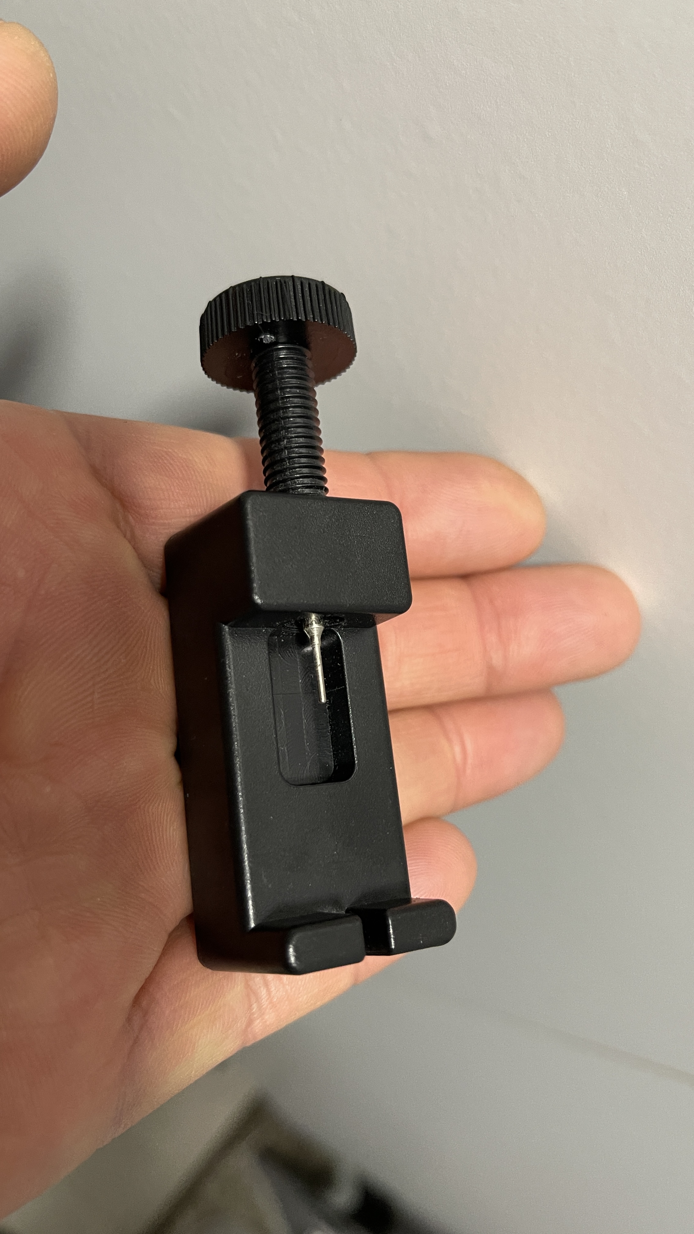 문제가 생겼네요. 일반시계줄 핀 빼는 공구로 밀어서 빼니 핀의 스프링이 안으로 들어가버려서 짧아졌습니다.