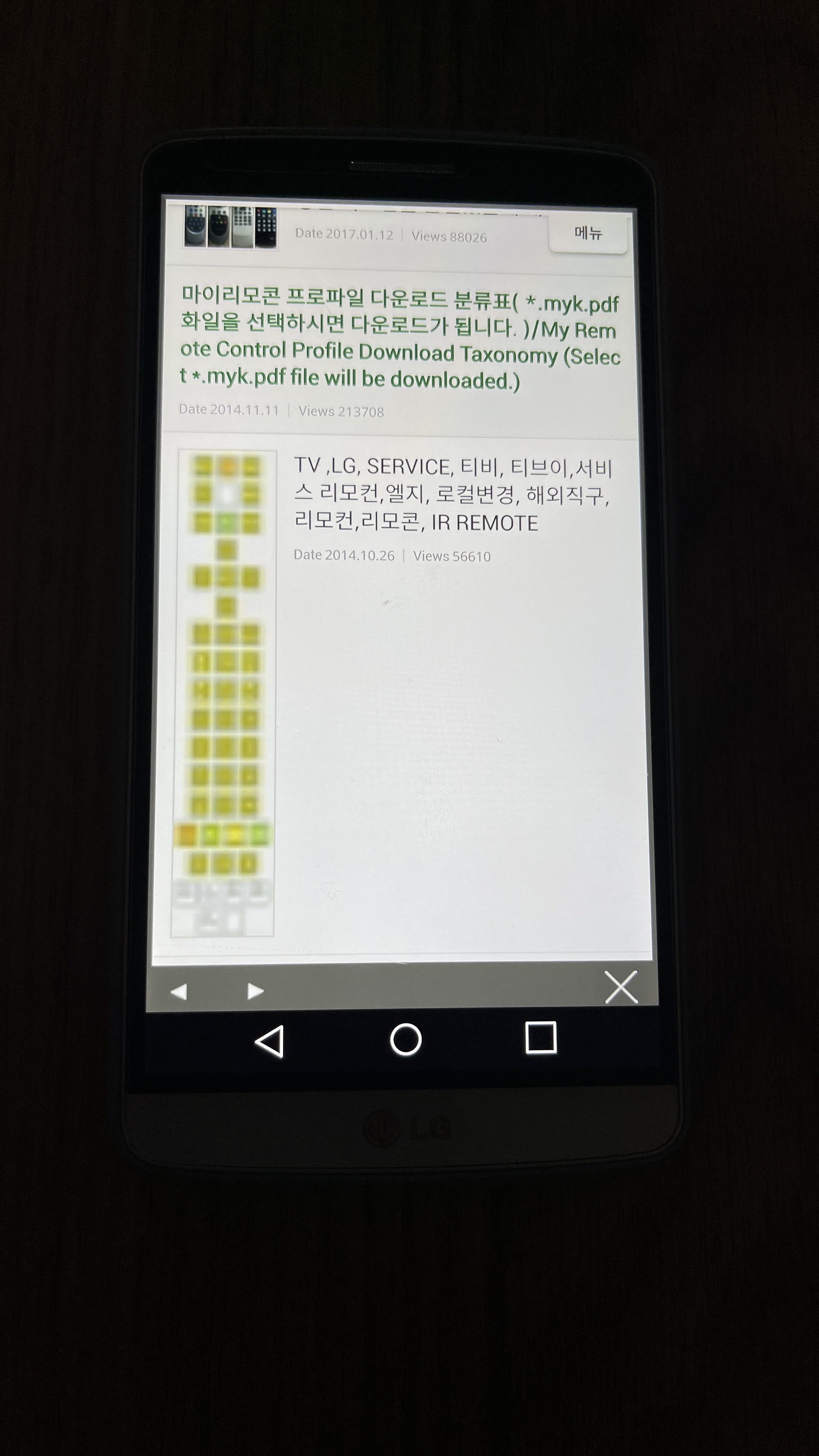 먼저 적외선 송수신되는 안쓰던 폰(리모콘어플 설치가능한 안드로이드폰) 엘지 G3를 사용했습니다.