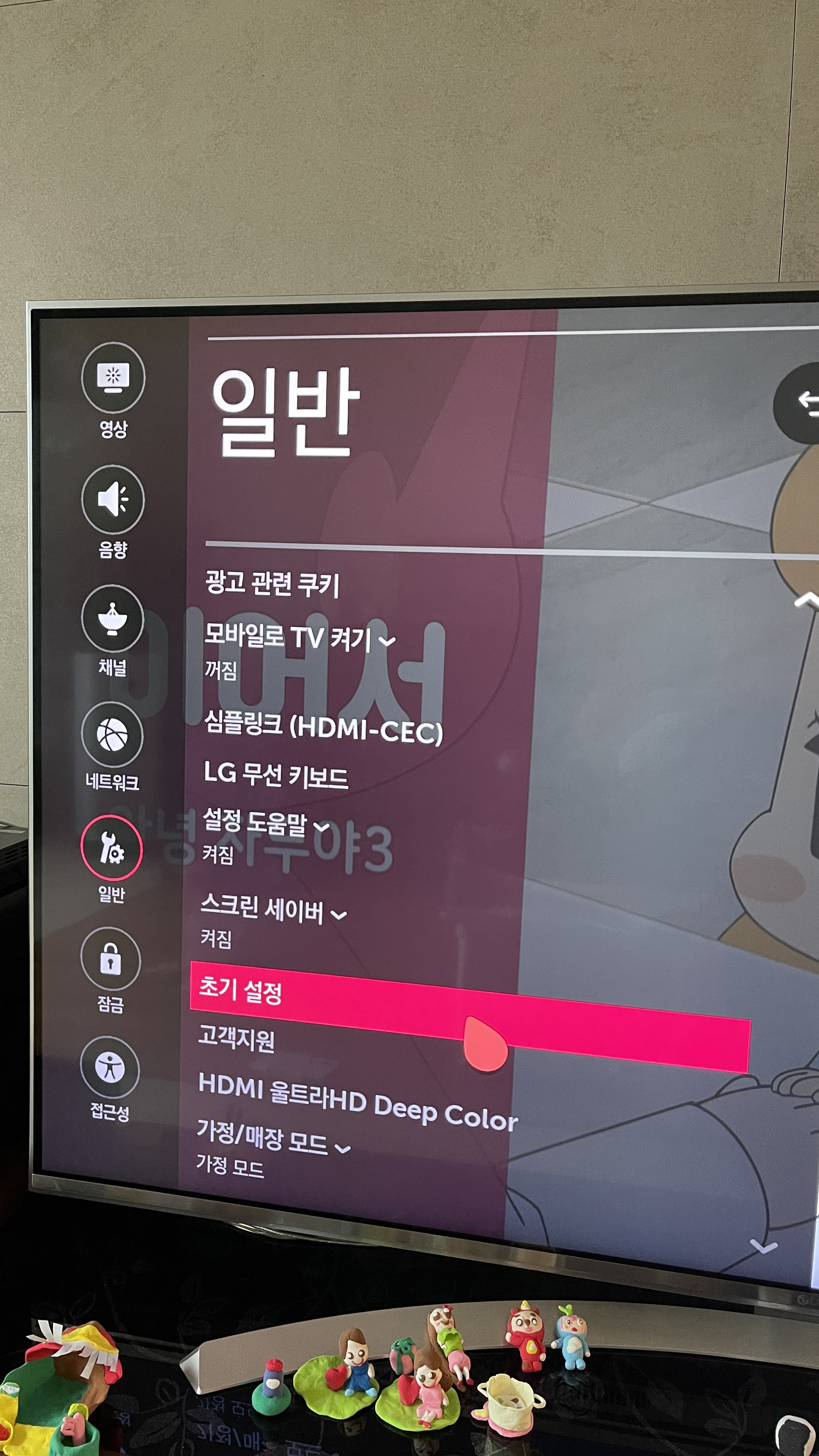 그러면 나가기한후에 매직리모콘으로 공장초기화를 하면 로컬변경되어 한국어로 됩니다. 매직리모콘으로 설정-일반-공장초기화 진행합니다.